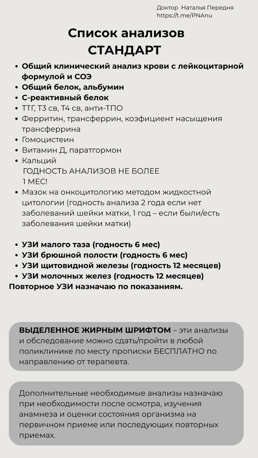Всем, кто планирует попасть ко мне на очный прием (и также онлайн консультацию) НЕОБХОДИМО СДАТЬ/ПРОЙТИ определенные анализы и обследование.